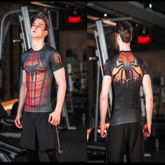 Shop Online Super Hero Superman men us compression T-shirt fitness clothes (Redand black spider) (Red and black spider) in Malaysia